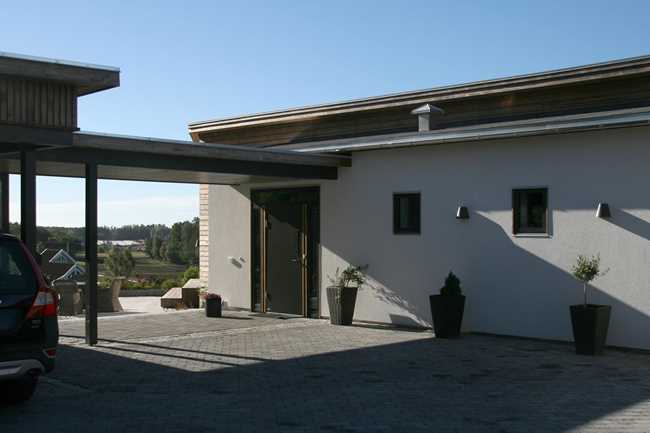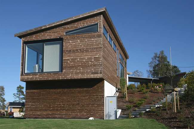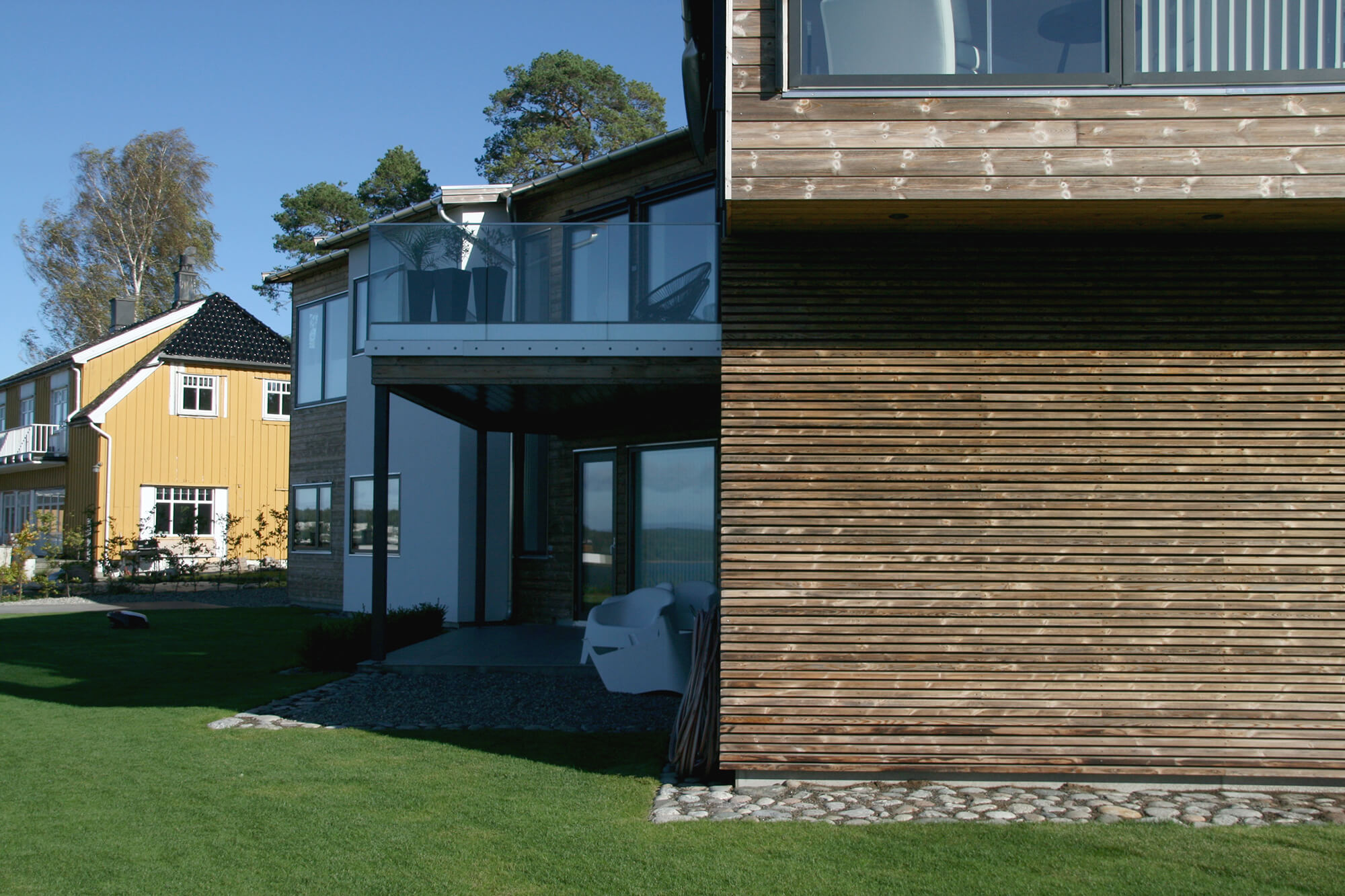 Eiendommen ligger flott til på Feste i en vestvendt skråning med fantastisk utsikt over Oslofjorden. Bygningens plassering på tomten er utviklet i samarbeid med In Situ landskapsarkitekter. Bygningen er organisert over to etasjer. Hovedetasjen inneholder alle hovedfunksjoner mens underetasjen inneholder barnesoverom, oppholdsrom og birom. Det er lagt til rette for maksimal utsikt mot vest.