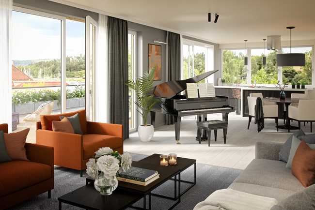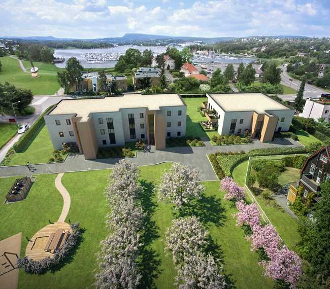 Prosjektet består av to bygg med totalt 17 vestvendte leiligheter rett ved vannkanten på Nedre Høvik. Arkitekturverket AS fikk utfordringen med å omtegne planløsningene i samtlige leiligheter, uten å endre bygningenes form eller uttrykk fra gjeldende rammetillatelse. Leilighetene fikk generelt mindre gangareal og en mer fleksibel planløsning, hvor soverom kan omdisponeres til walk-in-garderober eller ekstra stueareal. Hele prosjektet bygger opp under den unike beliggenheten med store vindusflater og romslige uteplasser mot vest og Sandvikbukta. Fellesarealene på bakkeplan er lagt i den lune eplehagen øst på tomten. 14 av de 17 leilighetene ble solgt meget fort og det planlegges for byggestart våren 2019.
